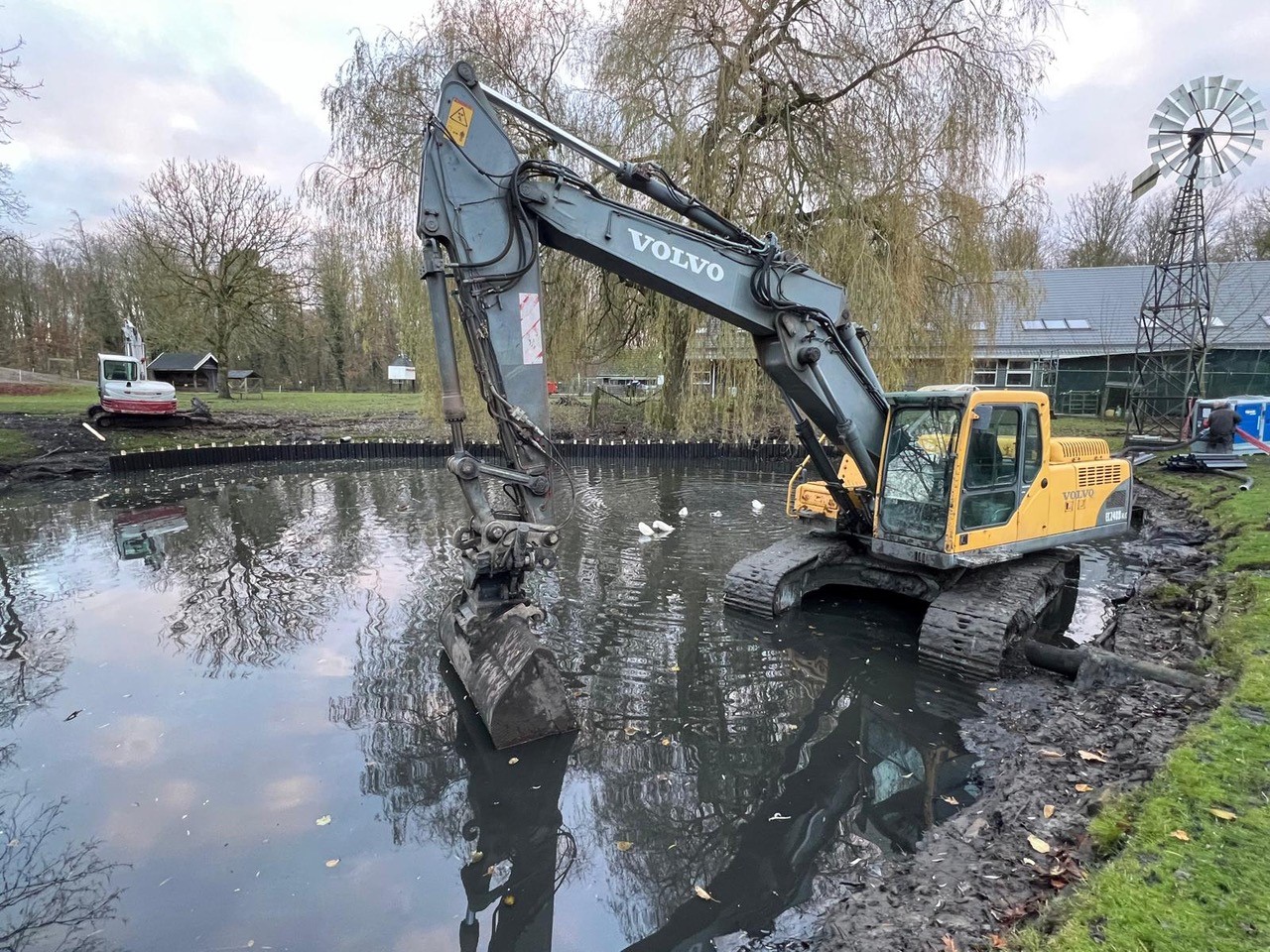 Door een bijdrage van 25.000 euro van Stichting Windfondsen Dronten kan de Scharrelberg in Biddinghuizen haar vijveroever verduurzamen! Op de foto zijn de werkzaamheden te zien.
